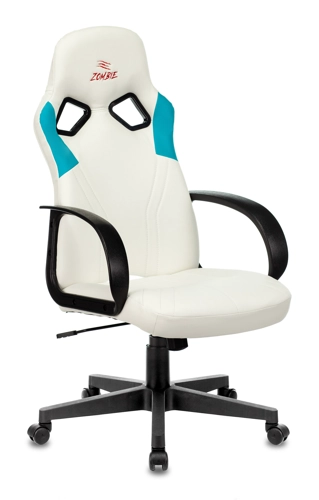 Кресло Zombie RUNNER (эко.кожа, мех. качания, крест. пластик, до 120 кг) Белый/голубой