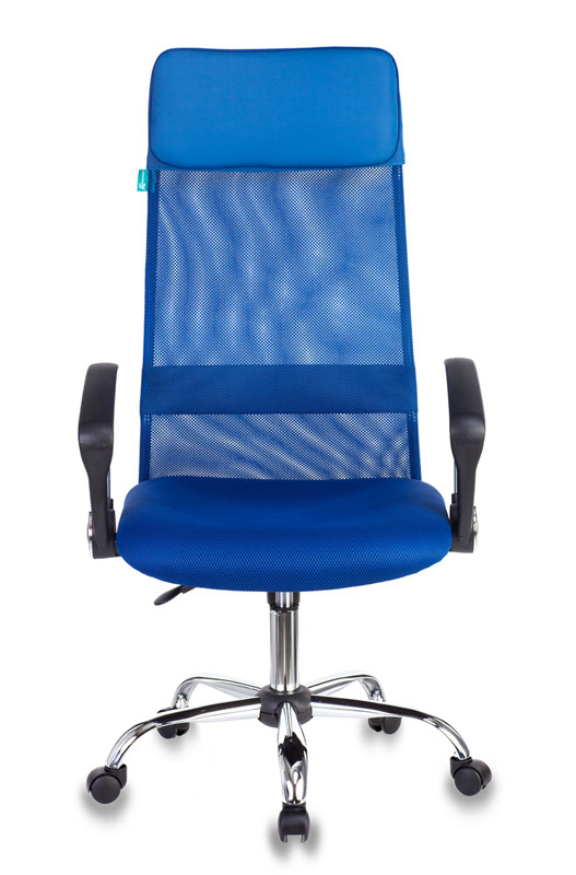Кресло Бюрократ KB-6N (сетка/ткань, пружинно-винтовой мех. качания, крест. металл хром, до 120 кг) Синий