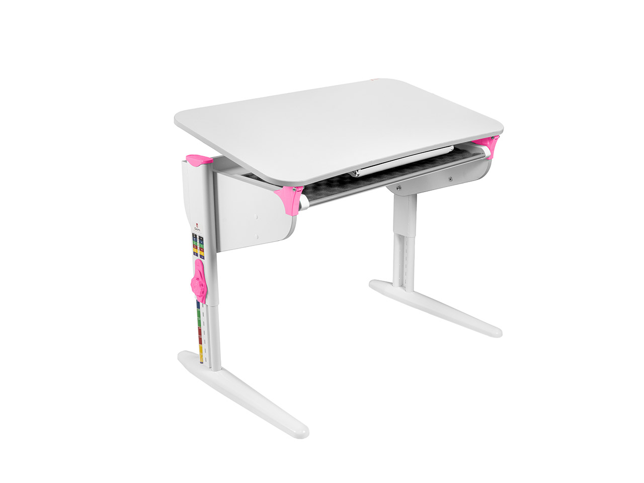 Парта ДЭМИ Parta 5/100 (ш1000, г565, в530-815, пластик розовый, белые ножки) Белый