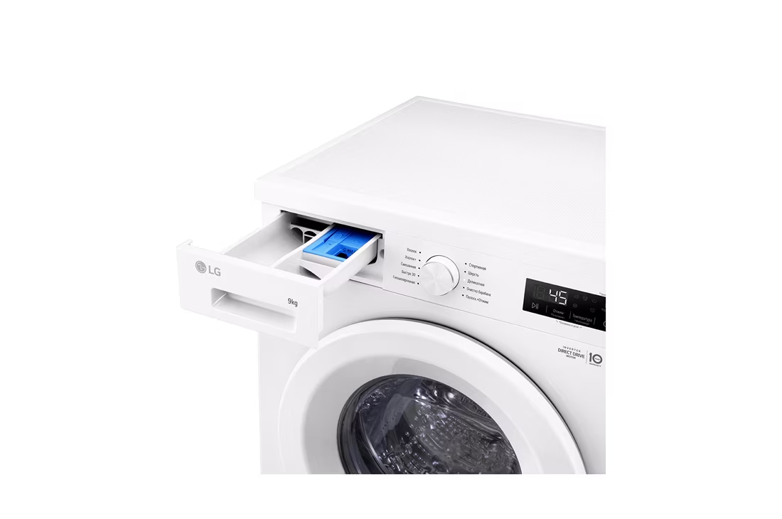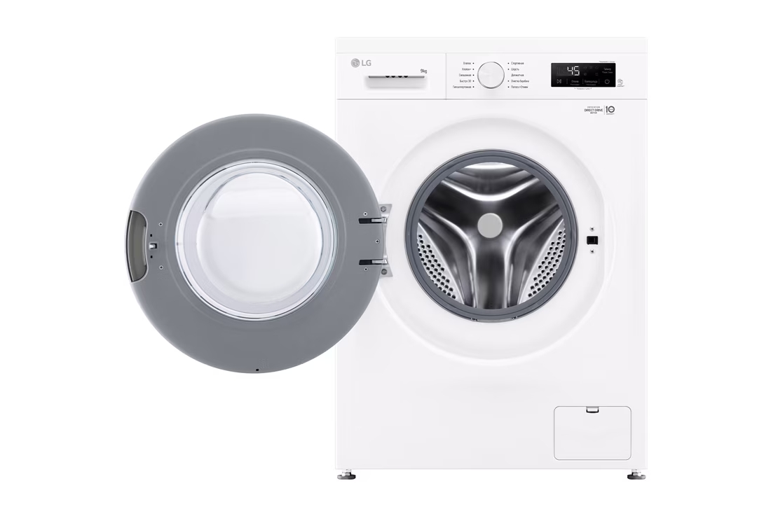 Стиральная машина LG F2Y1VS3W кл.:A фронт. макс.:9кг инвертор, белый — это полноразмерная стиральная машина с фронтальной загрузкой до кг. Модель оснащена надежным инверторным мотором с прямым приводом, функцией обработки паром Steam™ и технологией «6 движений заботы» (6 Motion).
