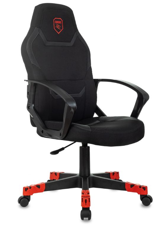 Кресло Zombie 100 (ткань/эко.кожа, без мех. качания, крест. пластик, до 120 кг) Черный/красный