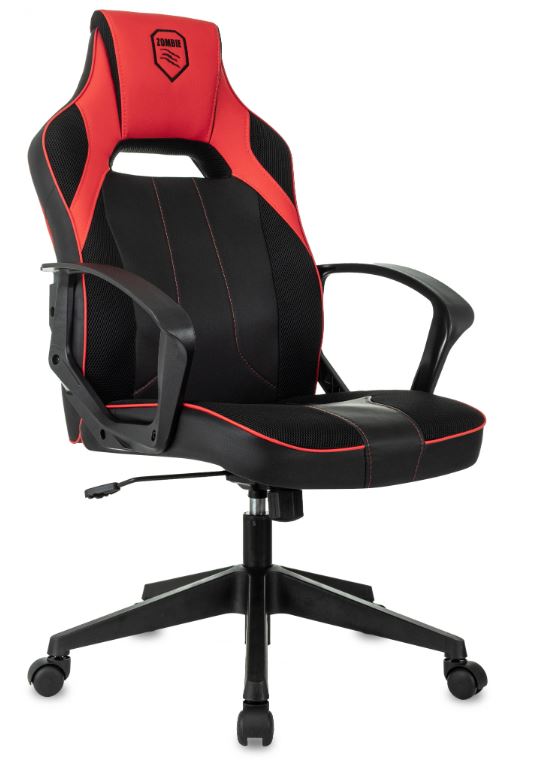Кресло Zombie 400 (ткань/эко.кожа, мех. качания, крест. пластик, до 120 кг) Черный/красный