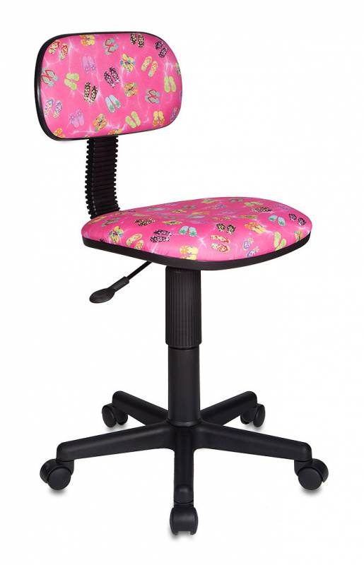 Компактное детское кресло Бюрократ CH-201NX/FlipFlop_P c тканевой обивкой розового цвета с рисунком Сланцы, регулировкой высоты (газлифт), регулировкой глубины сиденья, ограничением по весу: 100 кг.