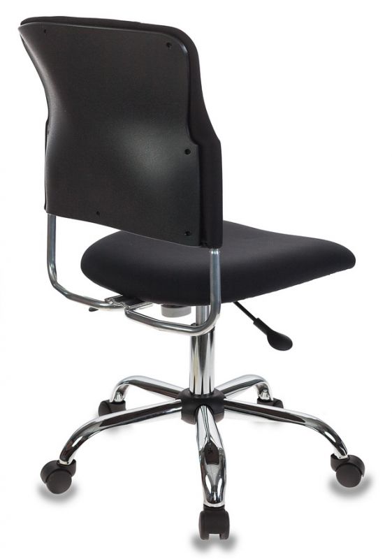 Эргономичное рабочее кресло Бюрократ c обивкой из ткани, хромированной крестовиной, регулировкой кресла по высоте (газлифт) и ограничением по весу: 120 кг. Отличительной особенностью данной модели является функция динамической поддержки поясничной области спины. Глубина сиденья регулируется за счет перемещения спинки вместе с опорой взад-вперед с помощью барашка. Установка кресла на колесиках.