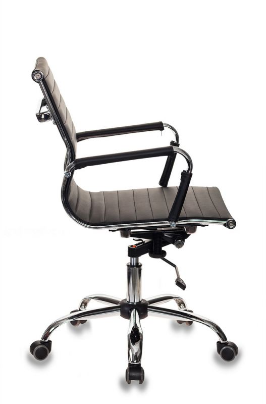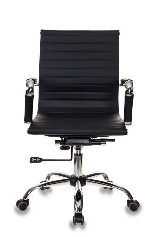 Кресло руководителя Бюрократ CH-883-LOW с низкой спинкой, обивкой из искусственной кожи, регулировкой высоты сиденья, хромированной крестовиной, хромированными подлокотниками с мягкими накладками из искусственной кожи, ограничением по весу: 120 кг. Отличительной особенностью данной модели является механизм качания с возможностью фиксации кресла в рабочем положении.