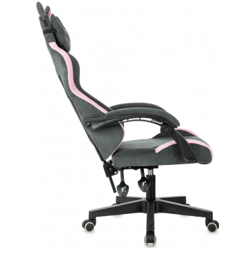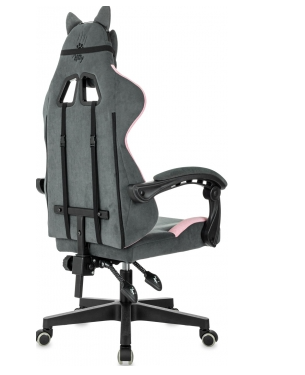 Кресло Knight Kitty Fabric (ткань, фиксация наклона спинки, крестов. пластик, до 120 кг) серый/розовый — модель с фиксацией наклона спинки в любом положении, регулировкой высоты и поддержкой поясничной и шейной областей.