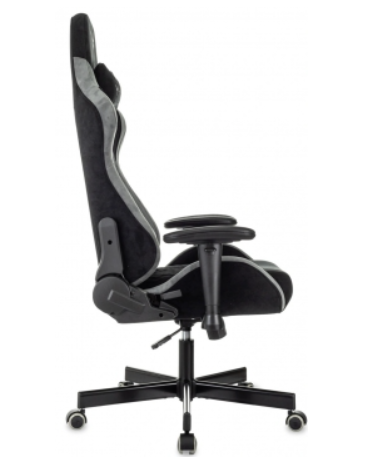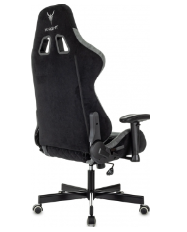 Кресло Knight Regal Fabric черный/серый искусственная замша с подголов. крестов. металл. Современное игровое кресло.Конструкция:Механизм качания с регулировкой под вес и возможностью фиксации в вертикальном положении.Регулировка высоты (газлифт).Поддержка шеи и поясницы (2 подушки).Регулировка угла наклона спинки (реклайнер 90-150 гр.).Подлокотники пластиковые 2D.Крестовина металлическая.Колеса для паркета и ламината.Ограничение по весу: 150 кг.