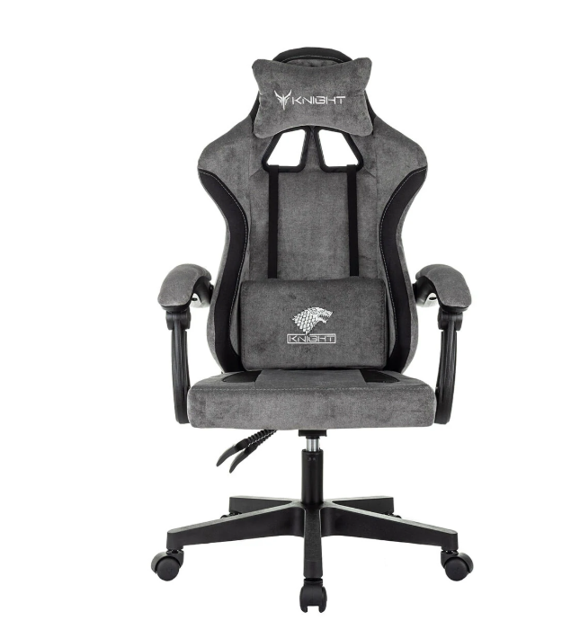 Кресло Knight Wolf серый/черный крестов. пластик - игровое кресло, которое подходит для работы или игр за компьютером дома и в офисе. Конструкция: основание на колёсиках, шарнирные подлокотники. Угол наклона спинки: от 90 до 110°. Эргономика и комфорт: поддержка поясничной области, фиксация спинки в нескольких положениях, регулировка высоты (газлифт), высоты спинки. Размеры: высота кресла — минимум 1150 мм, высота сиденья — минимум 420 мм, высота с подлокотниками — минимум 640 мм, ширина с подлокотниками — 640 мм, ширина сиденья — 495 мм. Материалы: обивка — ткань, подголовник — ткань, основание — пластик, колёса — пластик. Ограничение по весу: 120 кг.