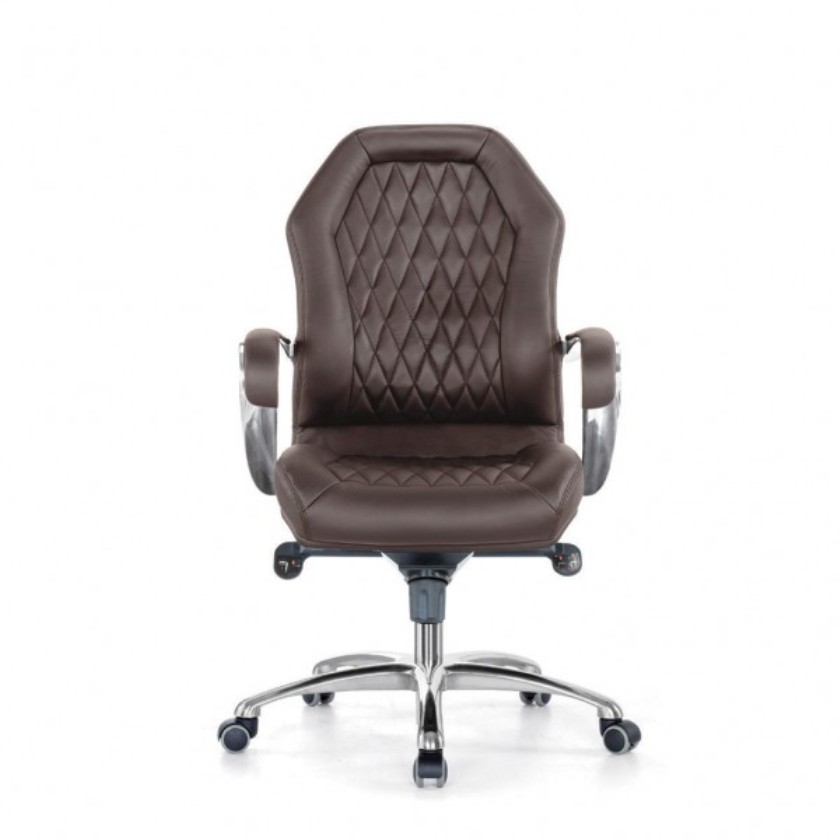 Механизм качания с регулировкой под вес и фиксацией в нескольких положениях. Регулировка высоты (газлифт). Металлические алюминиевые подлокотники с мягкими кожаными накладками. Металлическая крестовина (полированный алюминий). Обивка из натуральной кожи в сочетании с кожзамом (задняя часть спинки), металлические хромированные подлокотники с кожаными накладками. Металлическая хромированная крестовина. Колеса кресла имеют окантовку из полиуретана для использования по твердым поверхностям.