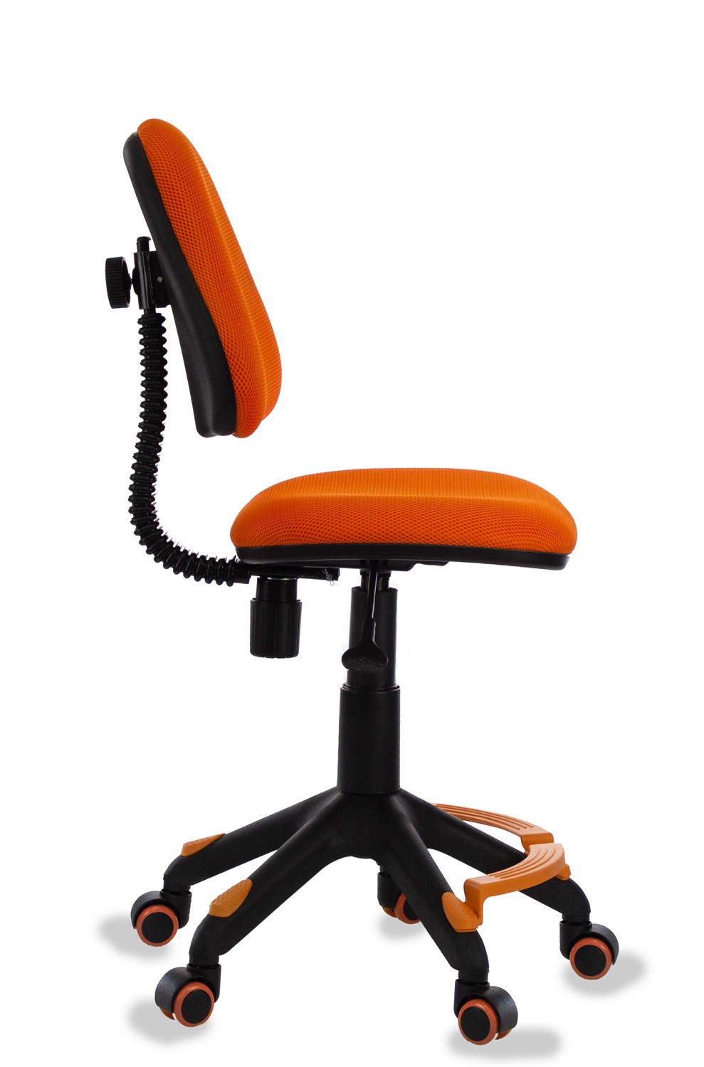 Детское кресло Бюрократ KD-4-F/TW-96-1 позволит организовать рабочее место для школьника и сохранить правильную осанку. Здесь предусмотрен пневматический механизм регулировки высоты сиденья, возможность дополнительно настраивать высоту спинки и механизм качания. Обивка выполнена из прочного и неприхотливого материала, который легко очищается от загрязнений. Сиденье имеет 2 варианта сборки (перемещается относительно платформы), за счет этого меняется глубина сиденья. Модель имеет уникальные колеса с обратным стопором: кресло перестает кататься, когда на него садишься.
