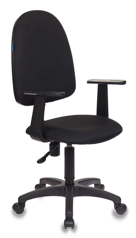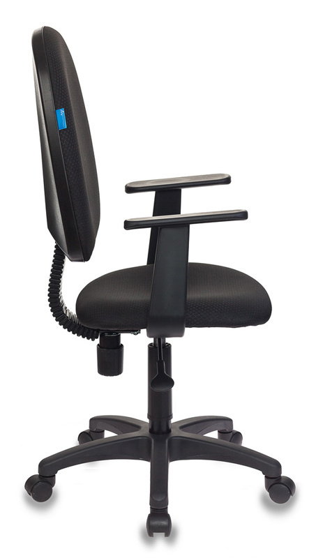 Кресло Бюрократ CH-1300 с обивкой из ткани, регулировкой высоты сиденья, пластиковой крестовиной, пластиковыми Т-образными подлокотниками, ограничением по весу: 120 кг. Отличительной особенностью данной модели является пружинно-винтовой механизм качания спинки.
