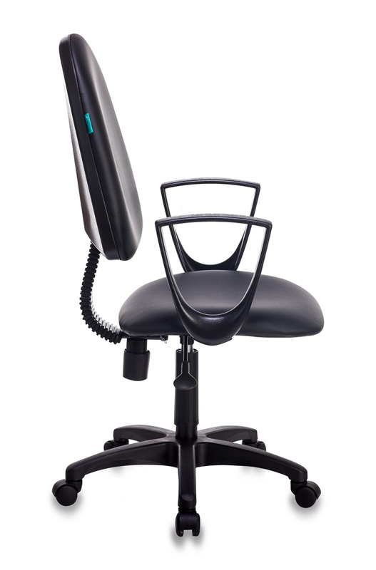 Кресло Бюрократ CH-1300 с обивкой из искусственной кожи, регулировкой высоты сиденья, пластиковой крестовиной, пластиковыми Т-образными подлокотниками, ограничением по весу: 120 кг. Отличительной особенностью данной модели является пружинно-винтовой механизм качания спинки.