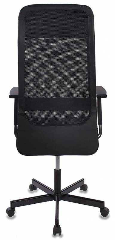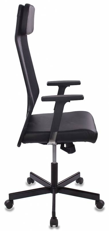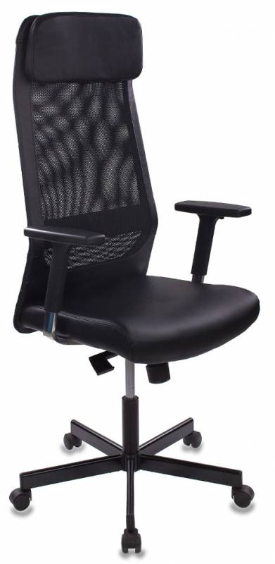 Кресло руководителя Бюрократ c обивкой из искусственной кожи и сетки, металлической разборной крестовиной, Т-образными регулируемыми в двух плоскостях подлокотниками, регулировкой кресла по высоте (газлифт) и ограничением по весу: 120 кг. Отличительной особенностью данной модели является синхромеханизм качания с регулировкой под вес и фиксацией в нескольких положениях. Колеса оснащены тормозом безопасности, реагирующим на изменение давления. Стул не откатывается, когда садитесь или встаете. Установка кресла на колесиках.