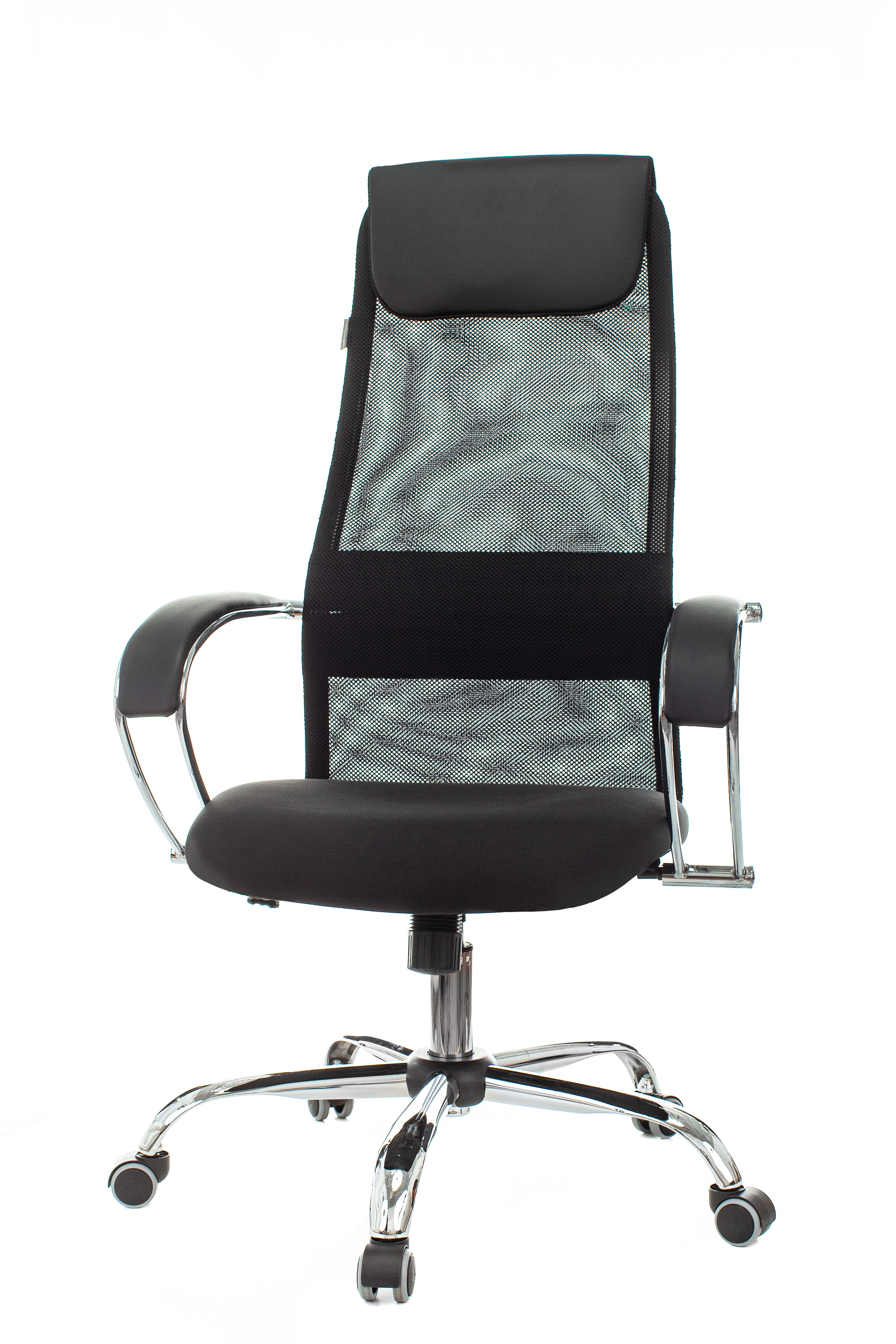Кресло Бюрократ CH-600SL (эко.кожа/сетка, мех. качания, крест. металл хром, до 120 кг) Черный