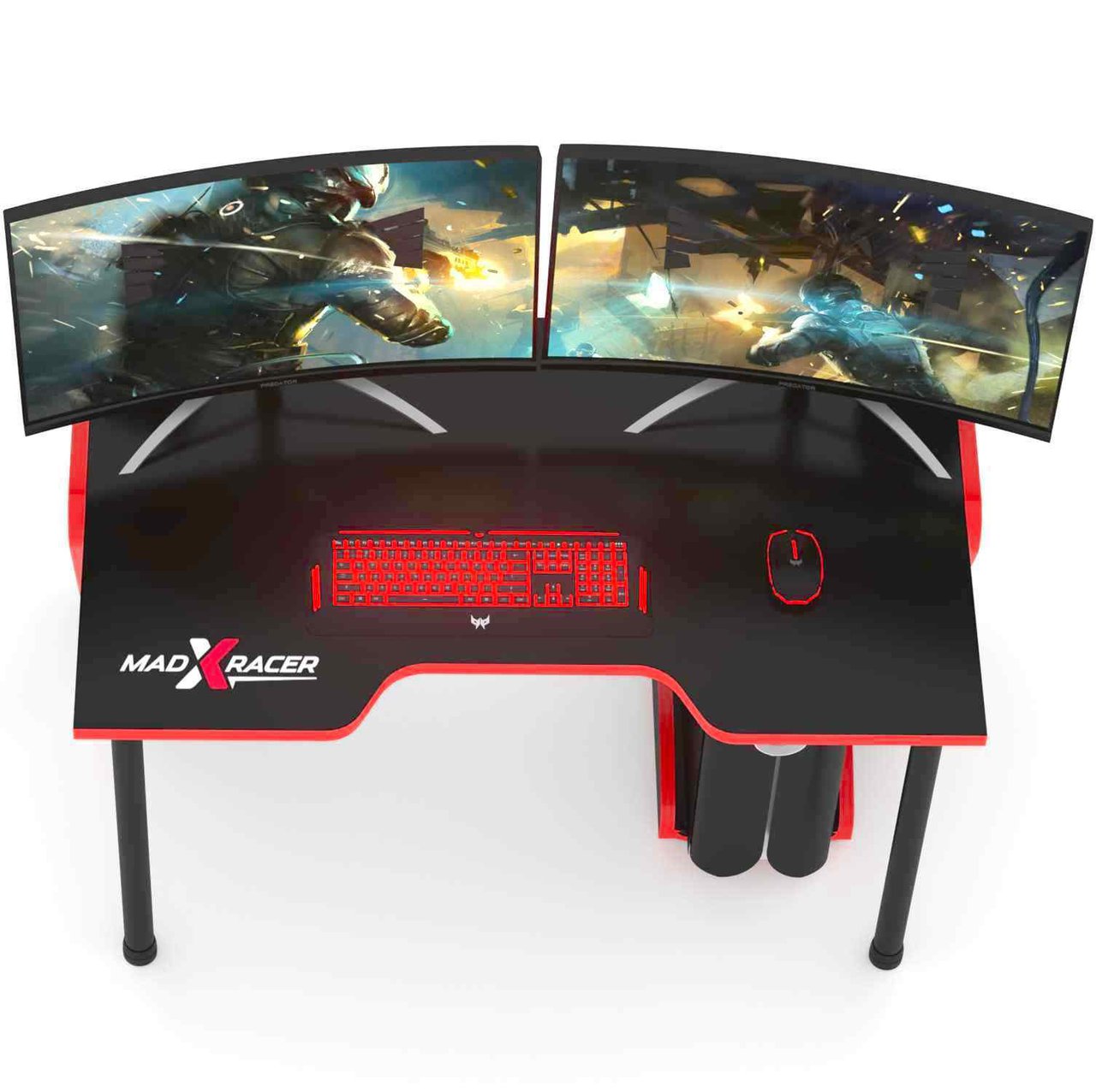 MaDXRacer KING GT – это большой и удобный профессиональный игровой стол для компьютера. Плавная выемка в передней части большой столешницы позволяет игроку разместиться за столом с максимальным возможным комфортом и во время игры не держать локти на весу. Конструкция стола очень надежная и прочная. Массивная столешница толщиной 25 мм позволяет выдерживать нагрузку до 180 кг. Стол очень большой и удобный. Боковины и задние стенки стола немного выступают над поверхностью столешницы, что предотвращает возможное падение предметов с поверхности стола. Стол отличается от аналогов смелым, оригинальным дизайном и хорошо просчитанной эргономикой.