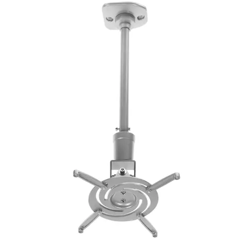 Столик для проектора Cactus CS-VM-PR01L-AL серебристого цвета выполнен в виде кронштейна и способен надежно удерживать прикрепленное к нему устройство. Он фиксируется на потолке, для чего в наборе имеются все необходимые крепежные детали. Благодаря возможности регулировать размер установочных отверстий (17-30 см), на кронштейне можно закреплять большинство моделей проекторов. В процессе эксплуатации кронштейна можно выбрать и нужный угол поворота зафиксированного на нем прибора. Значения углов поворота/наклона варьируются в пределах -90/+90°. Столик для проектора Cactus CS-VM-PR01L-AL оснащен выдвижной штангой из стали, которая позволит регулировать высоту размещения устройства (604-843 мм). Остальные детали изготовлены из сплава алюминия. Поэтому кронштейн способен выдерживать максимальный вес до 10 кг. Помимо наклона проектора его можно вращать на кронштейне на 360°. Установка столика для проектора занимает мало времени и не требует специальных знаний. А при необходимости он легко и быстро демонтируется.