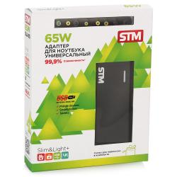 Адаптер питания сетевой STM SLU65 SLIM предназначен для заряда от сети ноутбуков известных производителей: LG, DELL, COMPAQ, LENOVO, TOSHIBA, IBM, SAMSUNG, FUJITSU, SONY, MSI, GATEWAY, ACER, HP, ASUS. Через имеющийся на борту разъем USB можно легко зарядить различные цифровые устройства. Мощность устройства 65 Вт, сила тока 4.74 А, входное напряжение 100 240 В. В комплект входит 9 съемных коннекторов. Адаптер надежно защищен от таких неприятностей, как перегрузка или короткое замыкание. Вес STM SLU65 SLIM всего 0.479 кг при габаритах 125x18x62 мм. При отсутствии нужного коннектора в комплекте Вы можете обратиться на сайт производителя адаптера и получить его бесплатно.