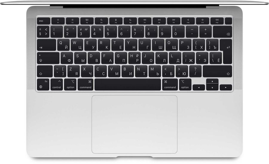 Apple MacBook Air 13 оснащается дисплеем Retina диагональю 13.3 дюйма. Изображение выглядит детализировано и реалистично, максимальное разрешение составляет 2560x1600 пикселей. Благодаря энергоэффективным комплектующим Apple MacBook Air 13 способен продемонстрировать до 18 часов автономной работы. Несмотря на высокую производительность охлаждение производиться в пассивном режиме за счет чего вашу работу с устройством будет сопровождать лишь тишина. Звоните по видеосвязи, устраивайте конференции или проводите вебинары без дополнительного оборудования, ведь ноутбук оснащен тремя микрофонами и веб-камерой. Работать в условиях низкой освещенности и даже в полное темноте поможет яркая подсветка клавиатуры. Данная модель Apple MacBook Air 13 2020 поставляется в серебристом цвете.