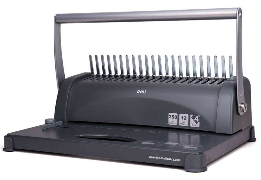 Брошюровщик Deli E3871, предназначен для использования в копировальных центрах и небольших офисах. Устройство оснащено механическим приводом способным произвести переплет 350 листов. Возможно использовать пружины размером от 10 до 16 мм. Поддерживает вертикальная обработка документов.