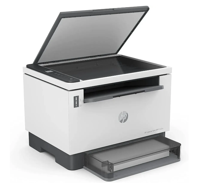 МФУ HP LaserJet Tank 1602w (A4, ч/б, 22 стр/мин, USB&WiFi) Технология: лазерный, черно-белый, A4, Разрешение: ч/б 600 x 600 dpi, Скорость печати: ч/б (A4) до 22 стр/мин; Лотки: подача 150 листов, выход 100 листов; Подключение: USB, Wi-Fi, BlueTooth, Мобильная печать: Air Print, Mopria; Дополнительные функции: сканирование, копирование Комплектация 2R3E8A МФУ HP LaserJet Tank 1602w оригинальный барабан переноса изображений HP, черный (поставляется с черным тонером с ресурсом ~5000 страниц), шнур питания, руководство по установке, справочное руководство, листовки с нормативными требованиями и информацией о поддержке.