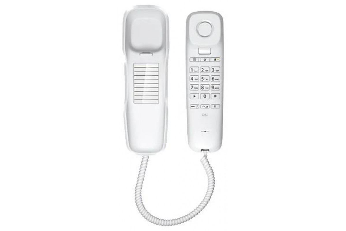 Телефон проводной Gigaset DA210 отлично подойдет тем, кто ищет простое устройство связи для ежедневного использования. Корпус из пластика окрашен в белый цвет. При необходимости модель можно разместить на стене, чтобы сэкономить пространство в комнате. Телефон не оснащен экраном, поэтому не способен определять номер звонящего абонента, но при этом может сохранить информацию о десяти контактах во встроенной записной книжке. Gigaset DA210 позволяет быстро повторить последний набранный номер нажатием одной кнопки. Достаточно длинный шнур дает возможность комфортно расположиться при разговоре. Такой проводной телефон станет покупкой, которая прослужит Вам не один год.