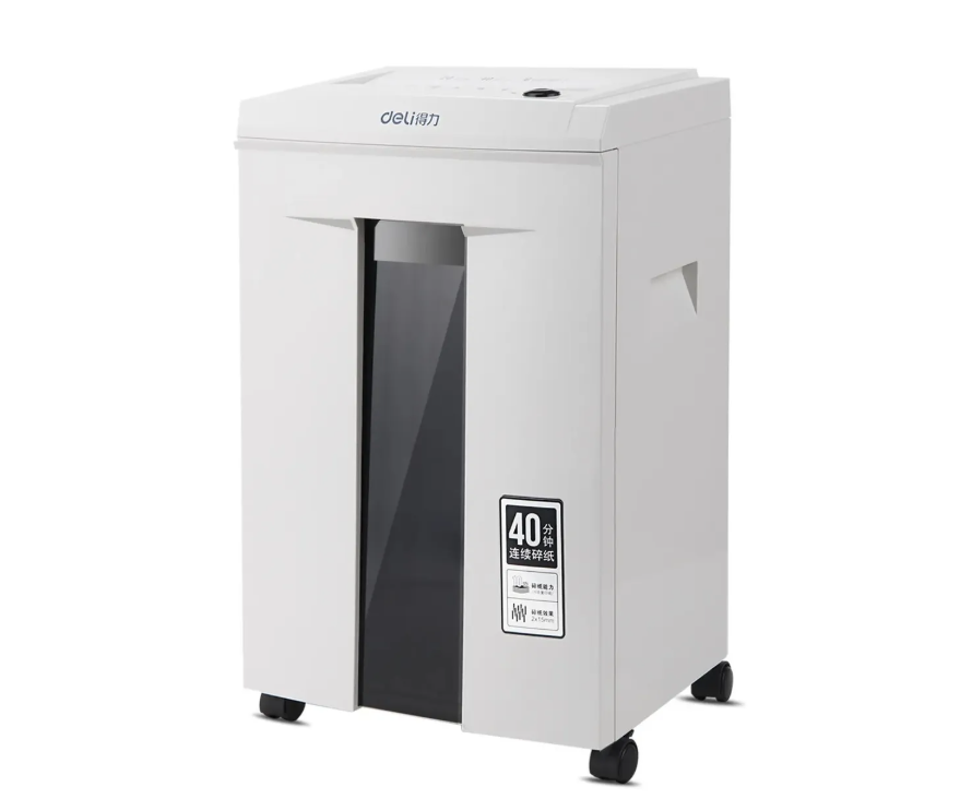Надежный уничтожитель бумаг DELI 9912 прекрасно подойдет для работы в небольшом офисе. Единоразово утилизирует 6 листов на фрагменты 2х12 мм. Класс секретности устройства 5 уровня. Уничтожитель секретных документов замечательно справиться с пластиковыми картами, CD дисками, канцелярскими скрепками и скобами. Здесь есть функция реверса, которая автоматически сработает при замятии бумаги. Максимальный цикл бесперебойной работы равен 40 минут.