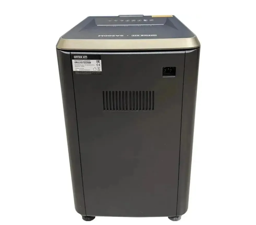Уничтожитель бумаги Office Kit SA200M1,9х10 черный/серый с автоподачей (секр.P-5) фрагменты 220лист. 40лтр. скобы пл.кар.