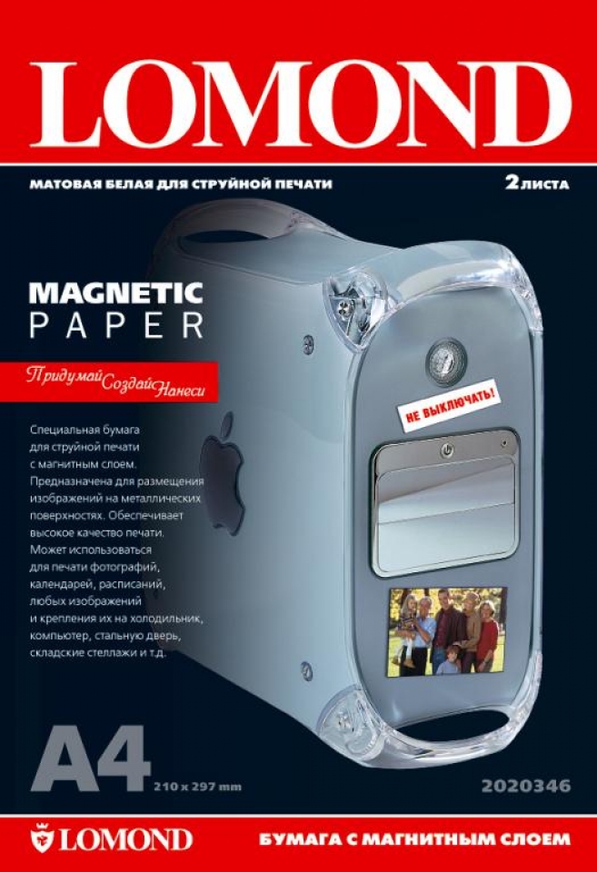 Фотобумага Lomond благодаря своему высокому качеству поможет добиться безупречного качества отпечатанных документов. Данная модель подходит для использования совместно с принтерами и МФУ, работающими по струйной технологии. Готовый отпечаток будет отличаться яркостью и насыщенностью. За счет магнитного слоя бумага Lomondo подходит для создания магнитных наклеек, бирок, ярлыков и прочего. Лицевая сторона данной модели – матовая благодаря чему напечатанные изображения будут долго не выцветать. Также Lomond отличается устойчивостью к высокой влажности (от 35 до 65%). Толщина материала равняется 325 мкм. В одной упаковке находиться два листа формата A3.