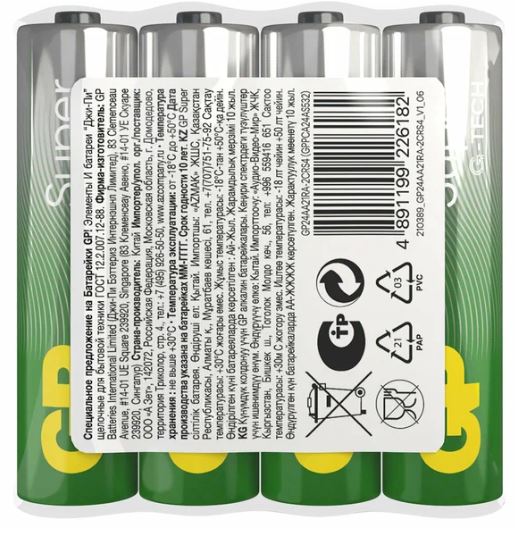 Элемент питания AAA, 1.5V, 4шт, GP G-TECH Super LR03/AAA спайка