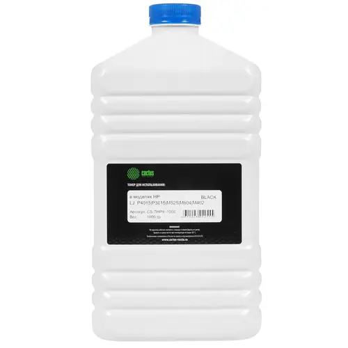Тонер Cactus CS-THP9-1000 – смесь черного цвета, предназначенная для заправки картриджей, используемых в различных моделях принтеров и МФУ от компании HP. В основе смеси применяются высококачественные химические компоненты, что в сочетании с передовыми технологиями производства позволит качественно печатать документы и любые другие материалы, обеспечивая равномерную и насыщенную передачу черного цвета без каких-либо визуальных дефектов. Поставка тонера Cactus CS-THP9-1000 осуществляется в прочном пластиковом флаконе емкостью 1000 г. За счет этого смесь отлично подойдет для многократной заправки картриджей. Плотно закручивающаяся крышка флакона обеспечивает его герметичность, защищая смесь от влаги и других негативных воздействий и позволяя надежно хранить ее на протяжении длительного времени. Для удобной и быстрой заправки картриджей рекомендуется использовать воронку или другие приспособления.