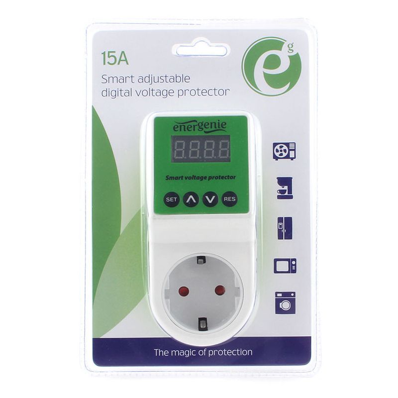 Реле напряжения Energenie EHB8-2 предназначено для защиты подключаемых устройств от повышенного/пониженного напряжения в сети и импульсных помех. Прибор обладает энергонезависимой памятью и позволяет запрограммировать пороги отключения и время задержки включения. Устройство оснащено многофункциональным LED-дисплеем на котором отображаются уровень напряжения в сети, время задержки и индикация состояния защиты. Розетка прибора оборудована защитными шторками и имеет заземляющие контакты.