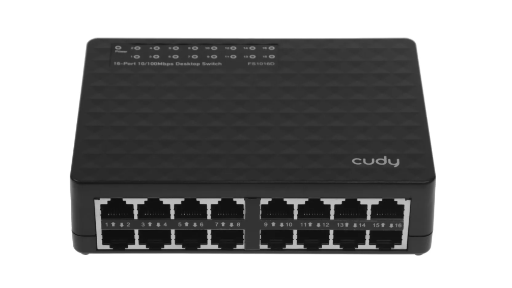 Коммутатор 16 port Cudy FS1016D 100 Мбит/с — неуправляемый 16-портовый коммутатор для проводного Ethernet. Предназначен для подключения устройств (компьютеров, ноутбуков, принтеров и т. д.) в пределах одной или нескольких зон локальной сети.