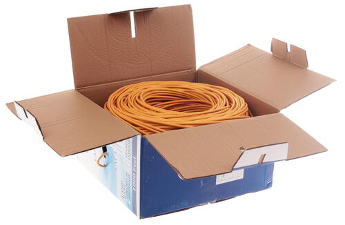 Витая пара SkyNet Premium CSP-UTP-LSZH-4-CU/100 предназначена для прокладки внутри помещений. Она используется при создании сетей, подключении компьютеров пользователей, различной техники. Принадлежит кабель к категории 5e. Витая пара выполнена в оранжевой полимерной изоляции. Оболочка гарантирует отличную защиту кабеля от внешних воздействий. Предотвращается окисление шнура и его случайное повреждение. Кабель прочный, гибкий и полностью безопасен в использовании. Для проводящей жилы применялась медь. Она гарантирует высокую скорость передачи данных, считается одним из лучших проводников, используемых при изготовлении кабелей. Эта витая пара неэкранированная, а ее длина – 100 метров. Поставка кабеля SkyNet Premium CSP-UTP-LSZH-4-CU/100 происходит в коробке. Кончик шнура выводится наружу, чтобы обеспечить удобную подачу при прокладке.