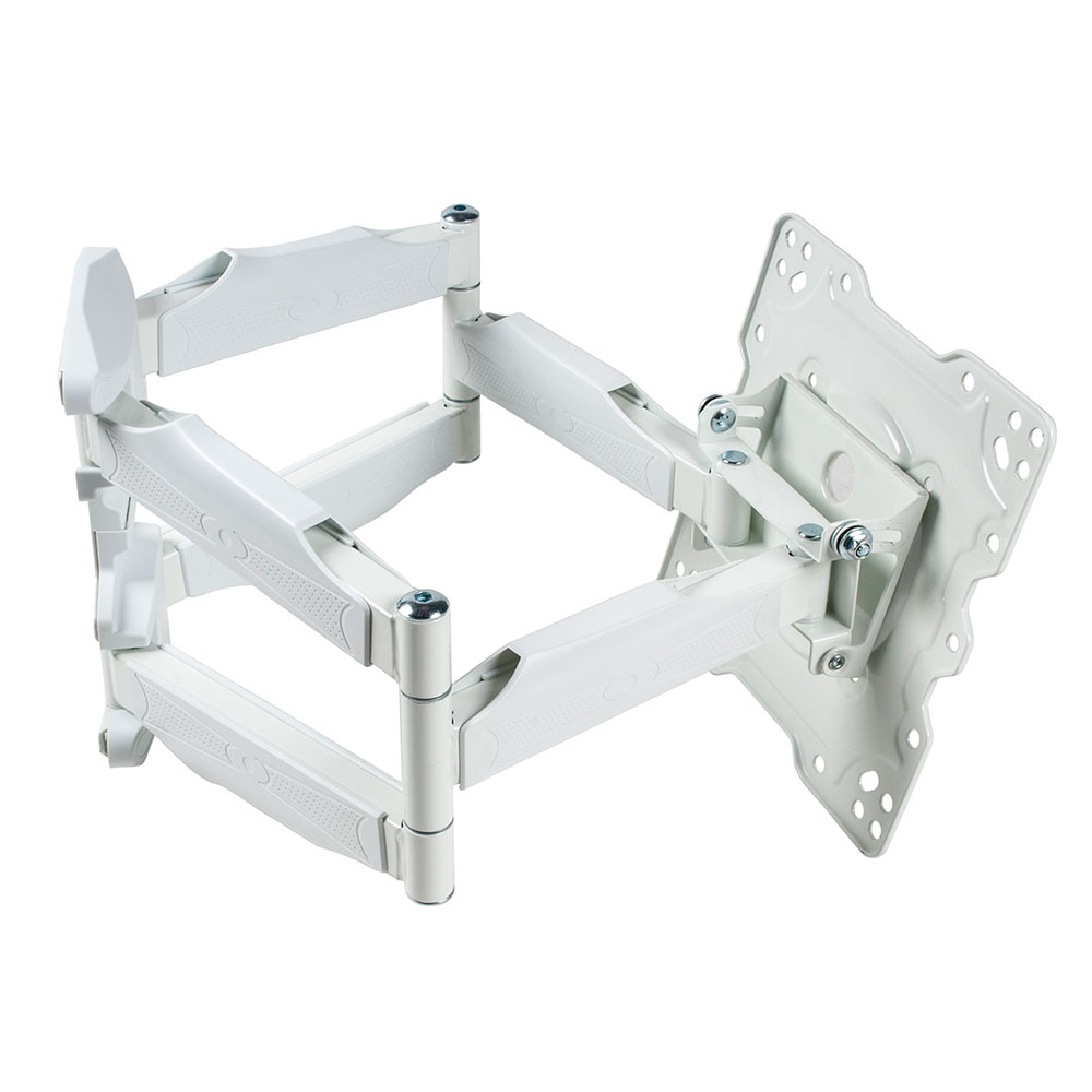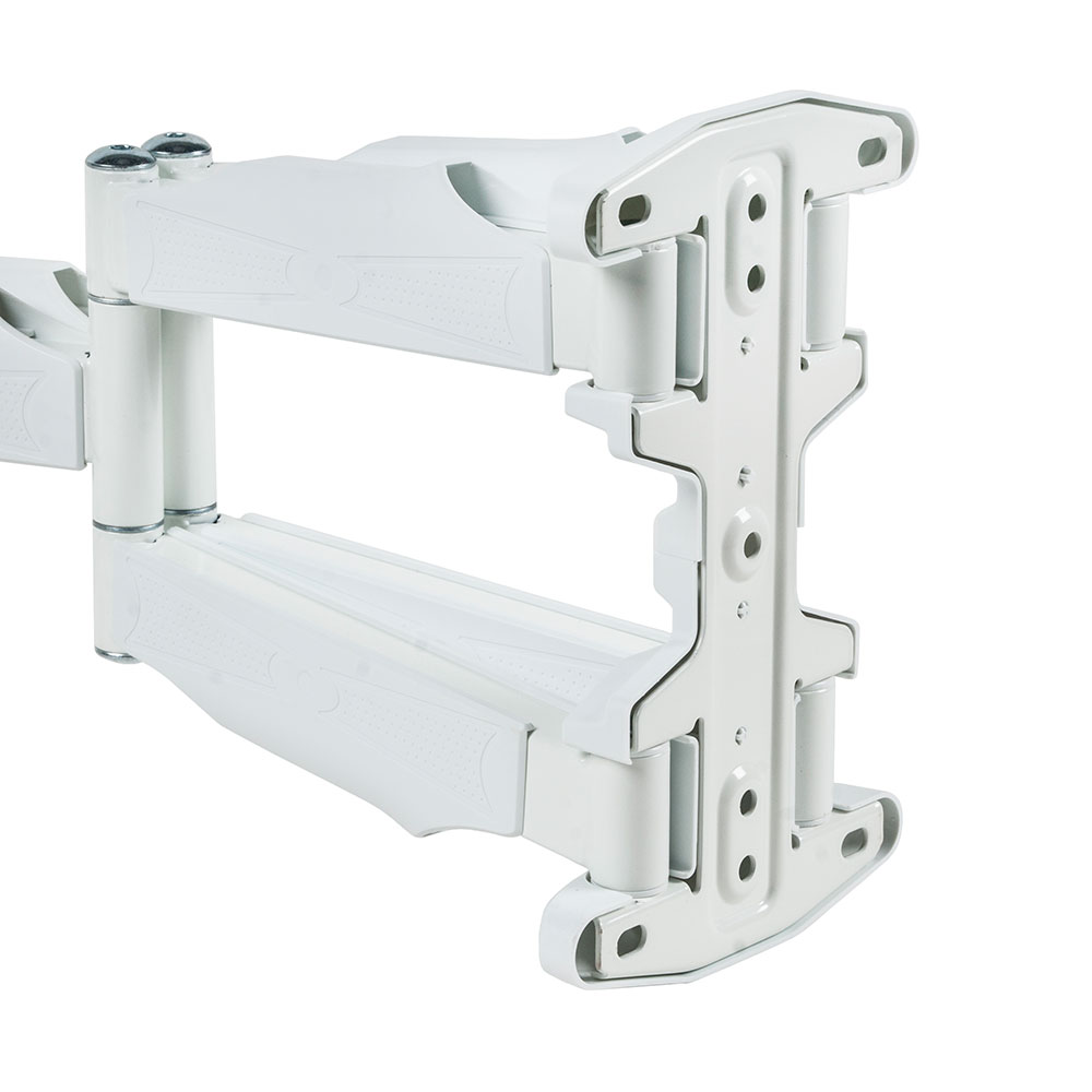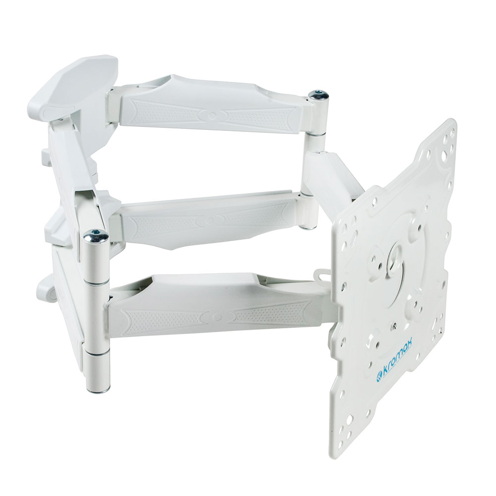 Кронштейн для телевизора Kromax Atlantis-45 обладает легкой и продуманной конструкцией и позволяет надежно зафиксировать на стене телевизоры с диагональю экрана от 22 до 65. Кронштейн предполагает фиксацию телевизионных устройств с креплением типа VESA различного размера (от 75 х 75 до 400 х 300) и максимальным весом в пределах 45 кг. Съемная монтажная пластина обеспечивает максимально быструю и комфортную установку телевизора на стенном держателе. Размещенный на белом стенном кронштейне Kromax Atlantis-45 телевизор можно наклонять под углом и поворачивать, добиваясь оптимального положения. Кронштейн дает возможность расположить телевизор на удалении от 55 мм до 470 мм от стены. Такой способ установки ТВ в комнате дома или в общественном месте позволяет сэкономить полезную площадь помещения. В креплении предусмотрен закрытый кабель-канал, который обеспечивает сохранность кабеля, используемого для подключения телевизора к ресиверу, антенне и т. д.
