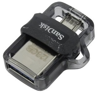 Память OTG USB Flash SanDisk Ultra Dual SDDD3-128G-G46 128 ГБ отличное решение для людей, которые активно пользуются портативной цифровой техникой. Вы сможете получить качественный накопитель для дальнейшего применения. Производитель скрупулезно продумал конструкцию изделия, оно прослужит вам действительно долго. Память SanDisk Ultra Dual SDDD3-128G-G46 128 ГБ выпускается в пластиковом корпусе. Он переносит внешние воздействия и защищает компоненты. Накопитель получил удобные выдвижные разъемы. Подобное решение облегчает дальнейшее использование. Накопитель оснащается разъемами USB 3.0 Type-A и microUSB. За счет этого реализована совместимость с большим спектром устройств. Вы можете подключить носитель к смартфону или планшету. Удается выгрузить на него файлы, переместить на компьютер. Носитель поддерживает USB 3.0. В результате удалось добиться высокой скорости 150 МБ/с. Вы сможете оперативно перемещать большие файлы с помощью носителя. Объем памяти значительный 128 Гбайт. Этого более чем достаточно для дальнейшего применения.