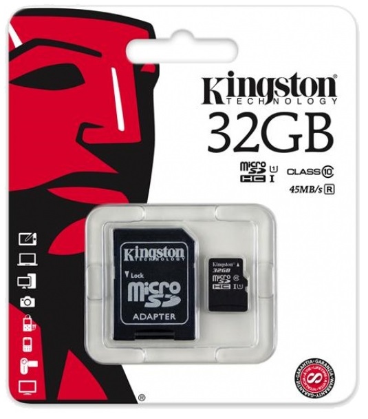 Карта памяти microSD 32Gb Kingston microSDHC CLASS 10 UHS-I + адаптер SD