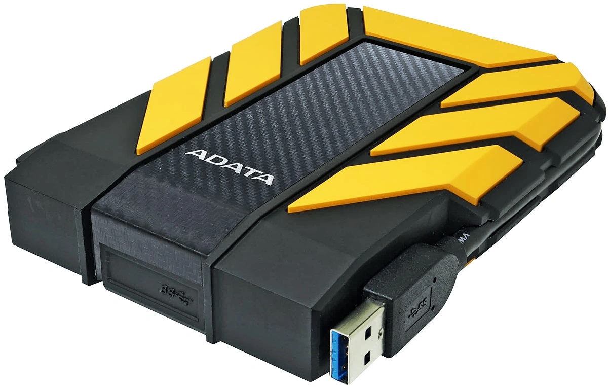 Внешний HDD A-Data HD710 Pro [AHD710P-2TU31-CYL] обладает объемом, равным 2 ТБ. Этот показатель достаточен для обеспечения возможности организации вместительного резервного хранилища, используемого для размещения значительного количества мультимедиа-данных, баз данных, документов, архивов и других файлов. Диск также может использоваться для обмена информацией. Высокая скорость обмена данными обеспечивается за счет реализованной в накопителе поддержки интерфейсов USB 3.0 и 3.1. Также существует возможность подключения HDD к портам USB 2.0, но в этом случае потребуется дополнительное подключение ко второму USB-порту, для обеспечения нужного диску питания. Внешний HDD A-Data HD710 Pro [AHD710P-2TU31-CYL] соответствует 2.5-дюймовому форм-фактору. Корпус накопителя имеет пылевлагозащищенные свойства, которые реализуются при плотно закрытой крышке USB-порта. При оформлении дизайна устройства был использован стильный желтый цвет. Модель имеет габаритные размеры, составляющие 133.3x98.5x26.7 мм. Невысокая (она равна 390 г) масса накопителя способствует удобству его транспортировки и эксплуатации.